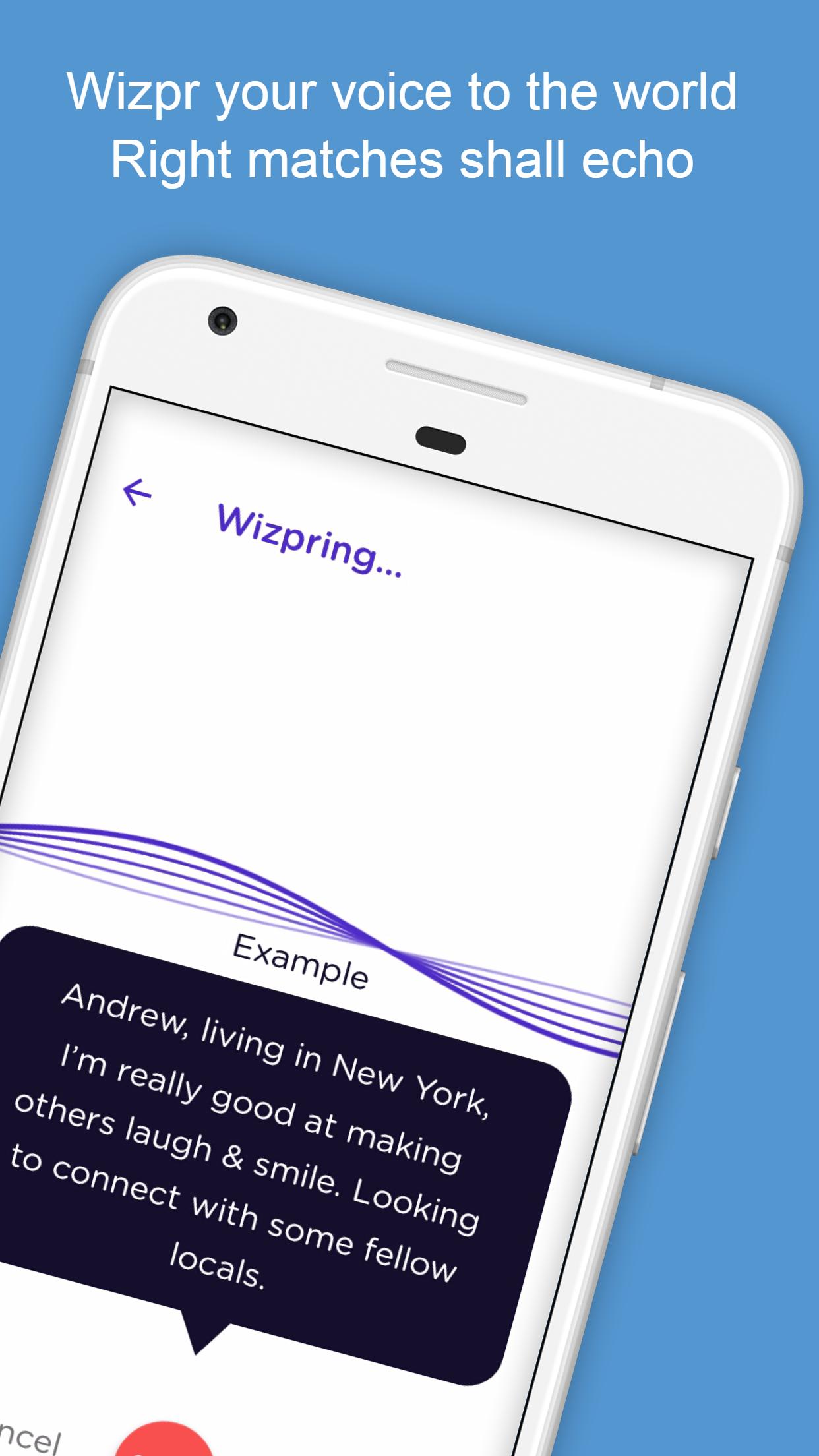 Wizpr 은 재미있는 음성 기반 데이트 앱으로 가득 찬 익명으로 음성 클립을 보내 세상에서 답장을받을 수 있습니다. Vise Vera, 당신은 다른 사람들의 음성 매치 요청과 이야기를 탐색하고 답장을 통해 그들에 대해 더 많이 배울 수있는 기회를 얻을 수 있습니다.