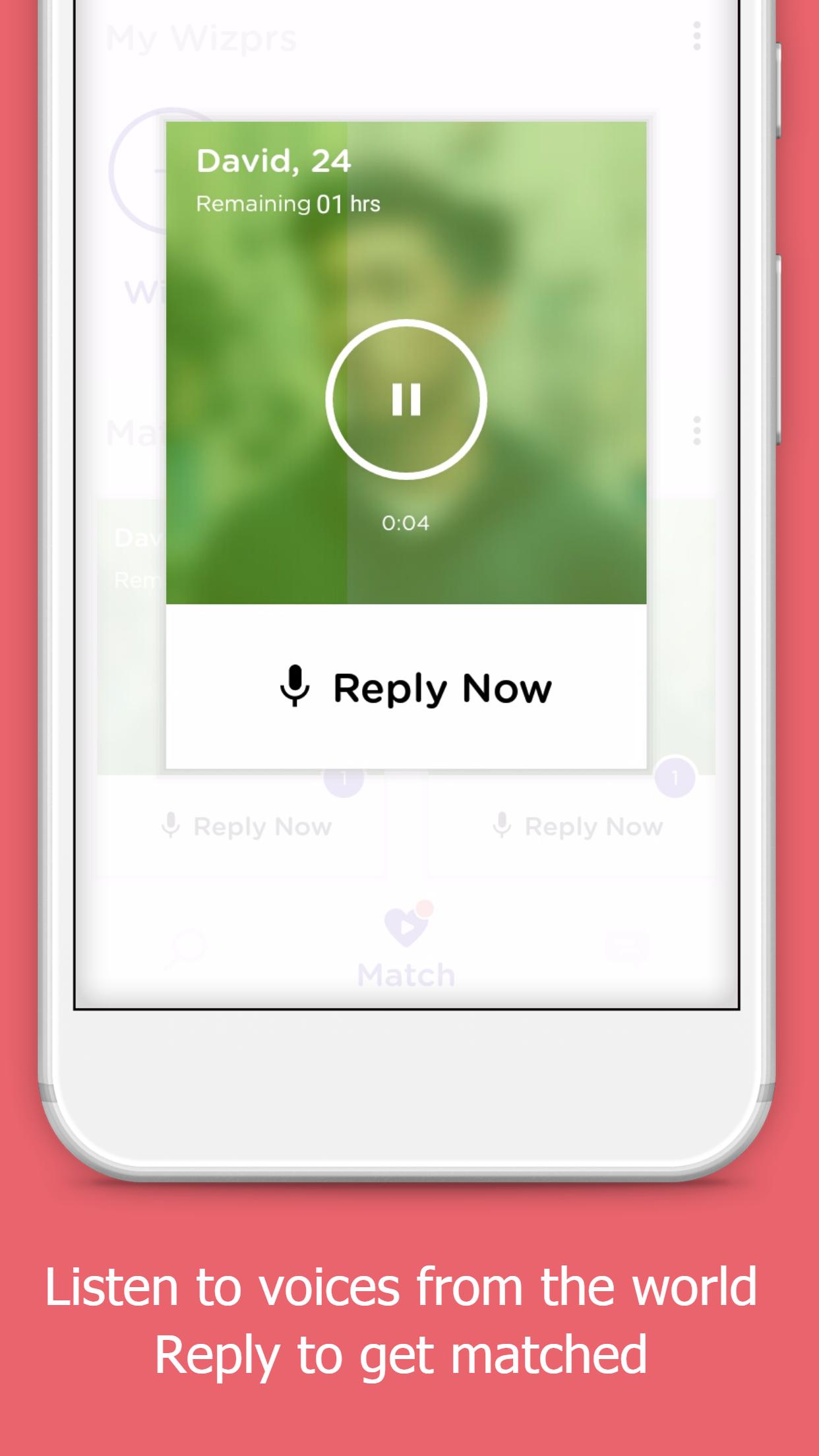 세계에 Wizpr . 누군가의 내면의 목소리를 듣습니다. 일치에 대한 답장. 프로필 사진으로 간단히 스 와이프 할 필요가 없습니다.
